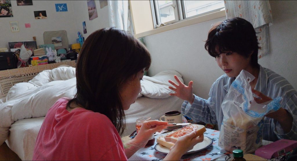 ソウルから京都にきたリン、沖縄から京都にきたそら、ふたりは大学で出会い、映画をつくる道を志した。ふたりはおもしろいことをするのが好きだった。そして、おもしろいことを撮影して笑い合うのが好きだった。ジャムサンドを空に飛ばしたい、フィルムカメラを万引きしてみたい、沖縄でそらのルーツを辿りたい…。リンとそらは様々な欲求を映画制作という名目で昇華していく。ふたりにとって映画は魔法の杖のようなもの。ありとあらゆる形にジャンルを変身させて、そこに身を置き、自らが映画を謳歌する存在となって、確かにフィルムに焼き付ける。ふたりはとにかく欲張りに相手を知りたいと願い、しかし妥協は許さずアイデンティティが永遠に不確定のまま遅延し続けることを受け入れて、最高に楽しい対話を実践する―。
